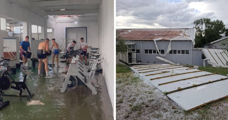 Vjetar je podigao krov zgrade i kiša je natopila prostorije koje su mladi sportaši praznili kantama. Materijalna šteta još nije poznata. Video pogledajte u nastavku, a fotografije na vrhu članka u fotogaleriji.