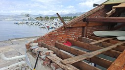 Mladići kantama izbacuju vodu. Ovo su posljedice nevremena u Veslačkom klubu Mornar