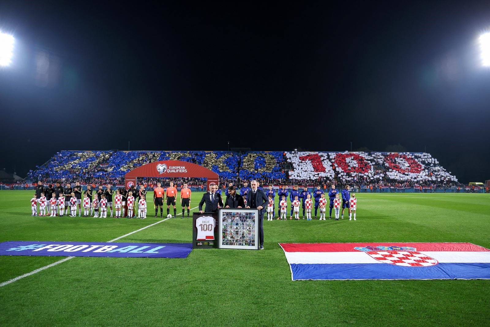 Izbornik Zlatko Dalić je u četvrtak u Češkoj ušao u "klub 100", a večeras je u svom Varaždinu upisao 101. nastup na klupi hrvatske reprezentacije. Varaždinci su uveličali jubilej i izborniku su priredili veliku koreografiju. Preko istočne tribine formirali su natpis "ZLATKO 100", a oko devet tisuća ljudi svjedočilo je tom događaju. Video pogledajte OVDJE.