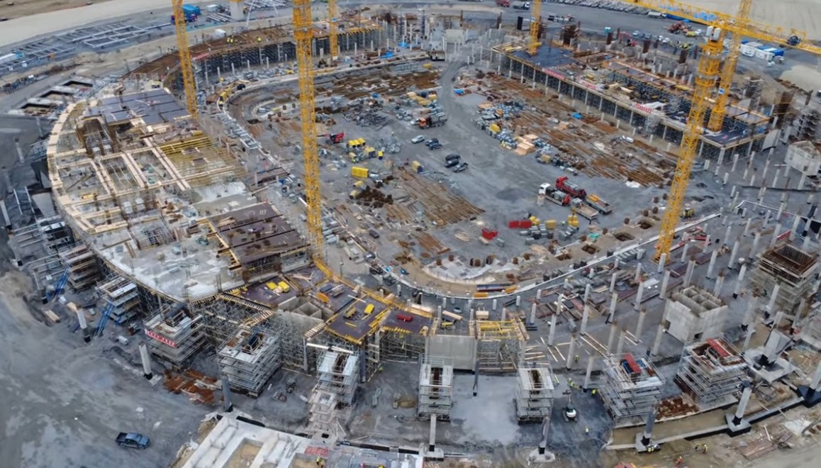 Godinu i pol te 368 milijuna uloženih eura kasnije, snimke pokazuju da su radovi na Nacionalnom stadionu još uvijek na razini temelja i prizemlja te da još uvijek nema ni traga tribinama koje su se već trebale graditi.