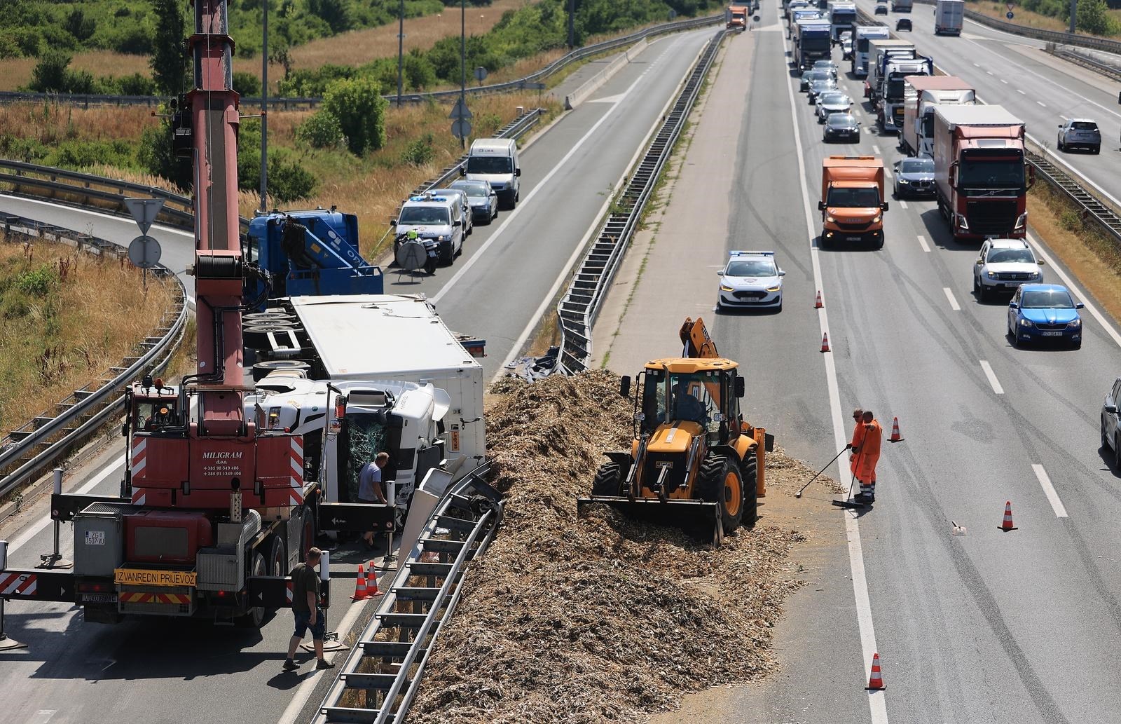 Na terenu je bager koji uklanja teret s ceste, no promet se trenutačno odvija otežano i usporeno. Zbog nesreće je došlo do znatnog zastoja – kolona vozila seže sve do čvora Kosnica i duga je oko šest kilometara, javlja HAK.