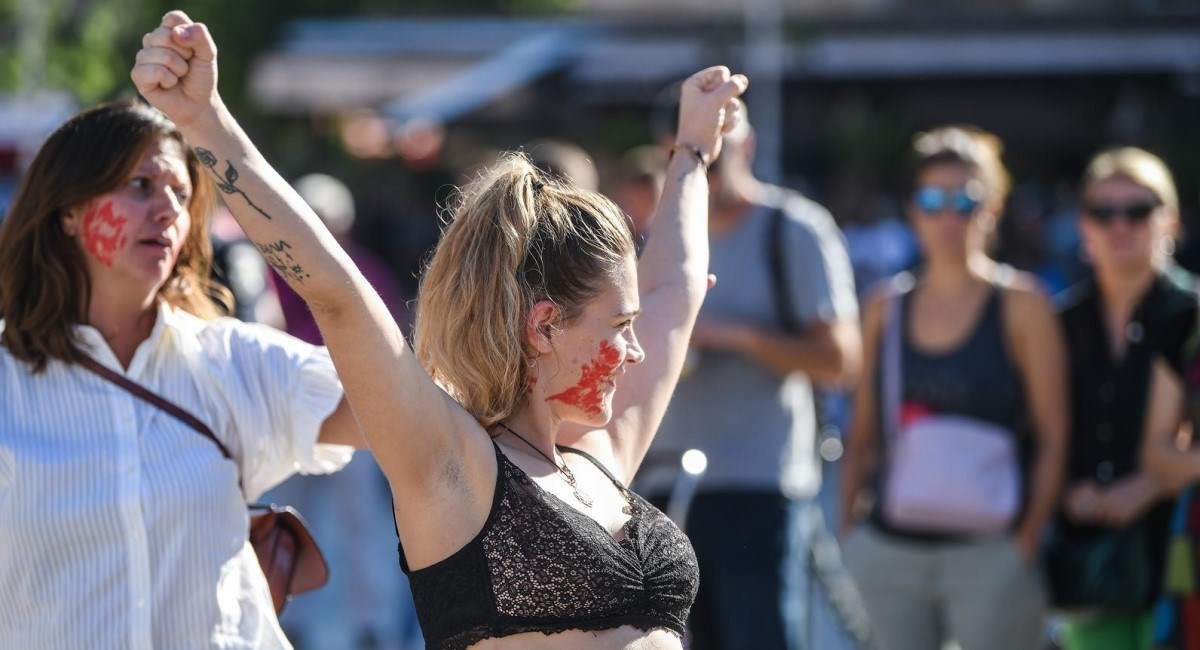 Kontraprosvjednici su nosili transparente koji pozivaju na ravnopravnost i borbu protiv nasilja nad ženama. "Ustani za svoja prava" i "Gledaj me u oči" neke su od poruka na transparentima.