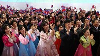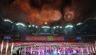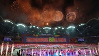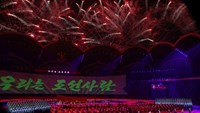 Na stadionu su održane masovne igre i umjetničke predstave, a Kim je bio u pratnji gostiju koje je velika okupljena masa pozdravila uzvicima "koji su zatresli noćno nebo glavnog grada", navela je KCNA.