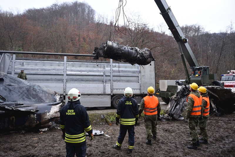 "Tijekom prethodna dva dana pronađeni su svi dijelovi zrakoplova, uključujući dijelove koje su koristili piloti da se katapultiraju i crnu kutiju, još prikupljamo sitne dijelove po šumi. Pri kraju smo utovara i ubrzo će svi dijelovi krenuti prema Zagrebu", rekao je Turkalj novinarima na mjestu nesreće.