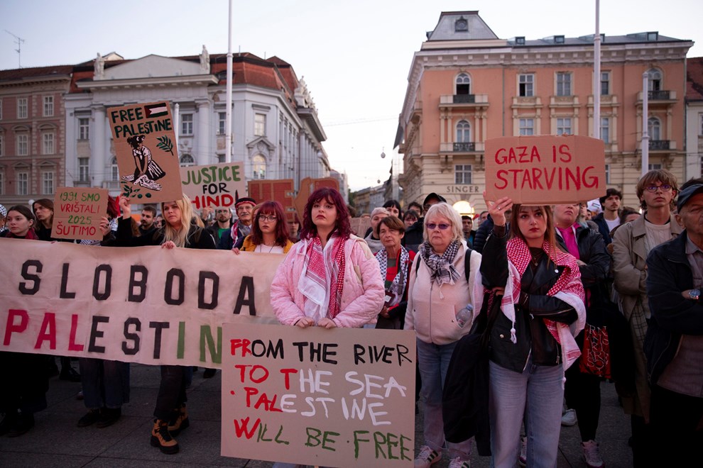 DANAS se na Trgu bana Jelačića u Zagrebu okupilo otprilke 2000 ljudi na prosvjedu solidarnosti s Palestinom pod nazivom "Ko je zasp’o, neka se probudi!", koji je organizirala Inicijativa za slobodnu Palestinu.