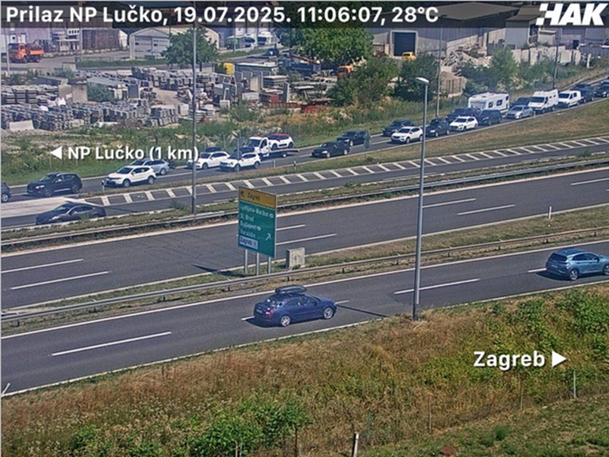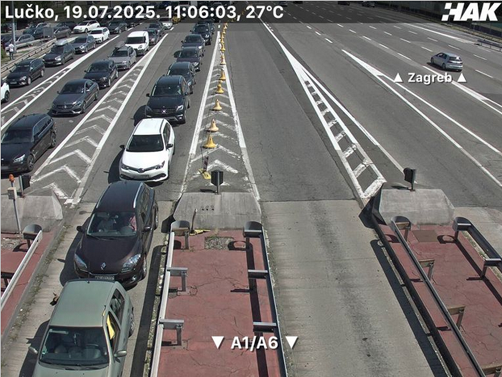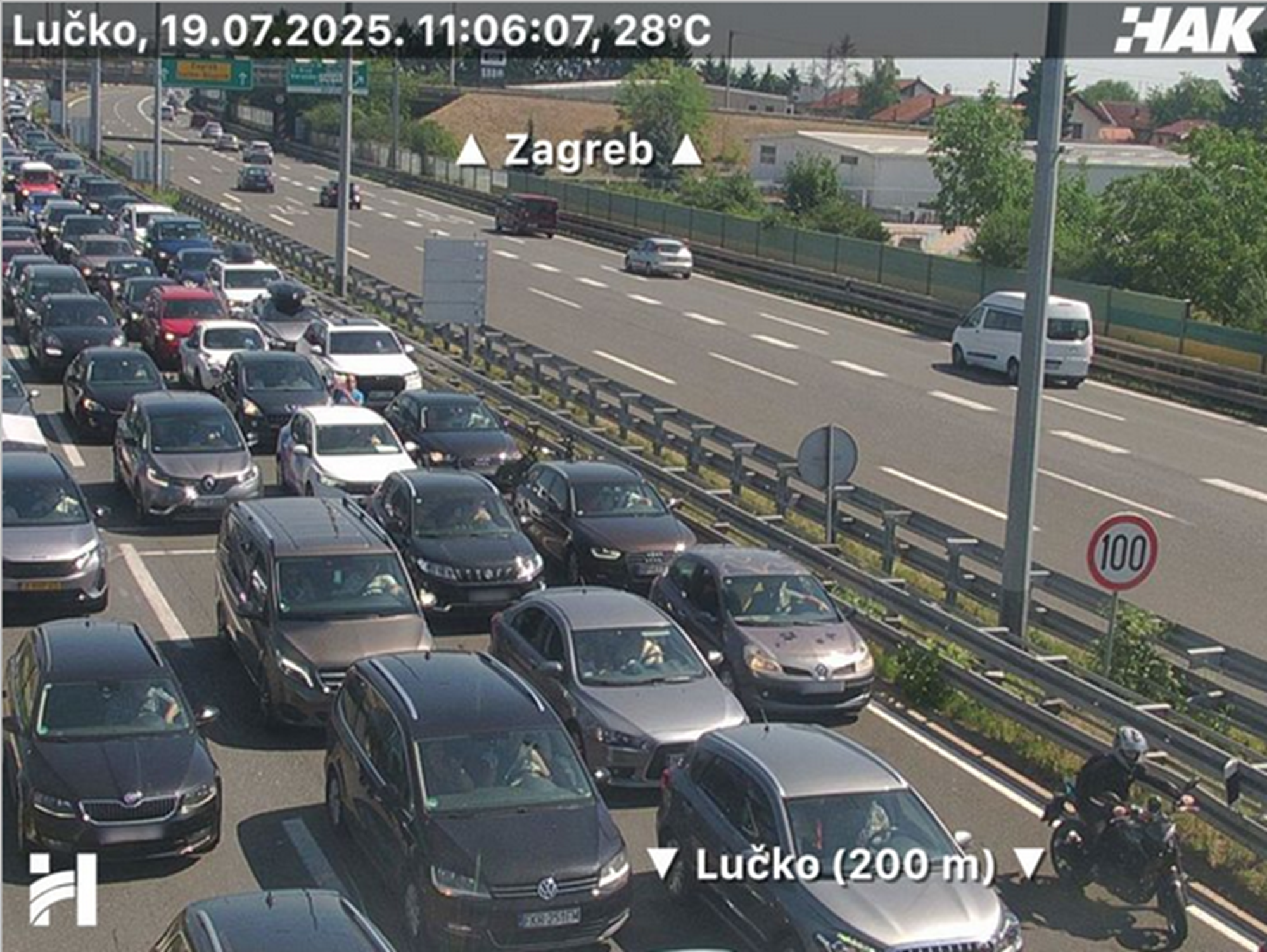 - pojačan priljev vozila prema naplatnim postajama Lučko u smjera mora iz smjera Buzina (A3) kolona je duga oko 1 km, iz smjera Jankomira (A2) nema dužih kolona