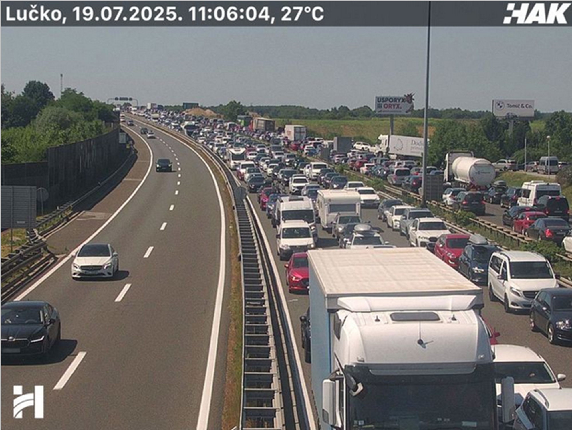 - pojačan priljev vozila prema naplatnim postajama Lučko u smjera mora iz smjera Buzina (A3) kolona je duga oko 3 km, iz smjera Jankomira (A2) kolona je duga oko 4 km