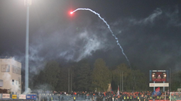 Tri baklje su bačene na atletsku stazu ispred južne tribine na kojoj su bili smješteni Hajdukovi navijači. U jednom trenutku došlo je do ispaljivanja većeg broja raketa prema istočnoj tribini na kojoj su bili navijači Cibalie. Četiri rakete su pale na prostor za gledatelje.