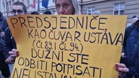 Nadam se da će se oni koji nas zastupaju zamisliti nad odlukom koju će danas donijeti. Je li vlast hrvatskog naroda? Žele li imati ljude ili zamorce u ovoj državi? To je to od mene, idemo dalje!" poručila je jedna od organizatorica prosvjeda.
