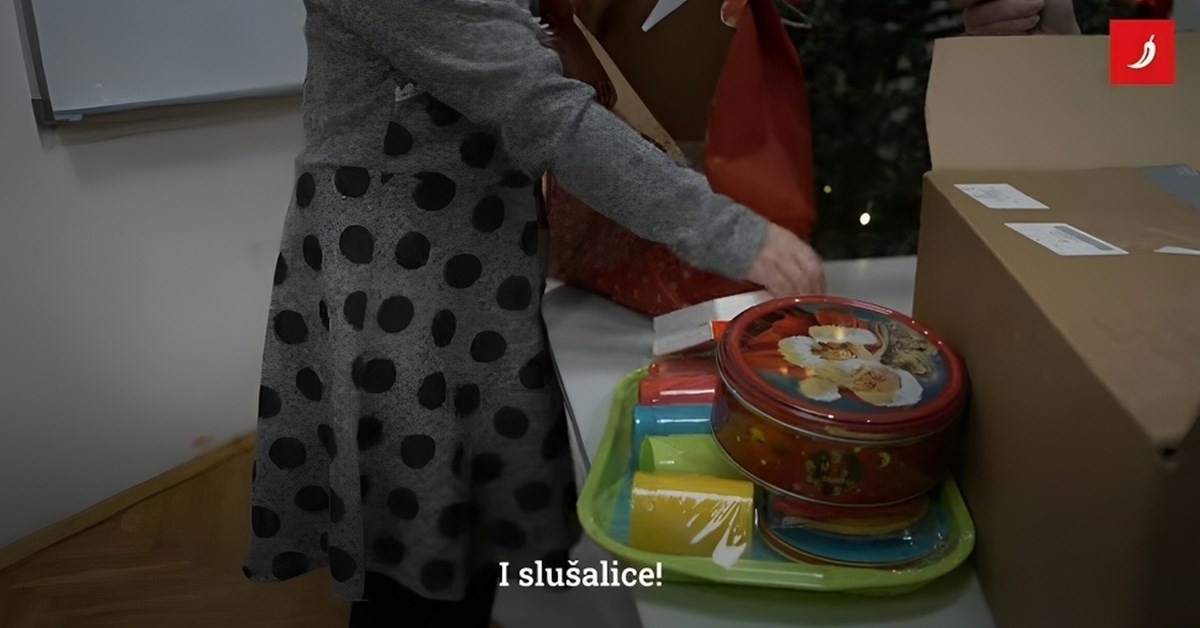 "O, pa tu svašta ima", razveselila se jedna gospođa. "Došla je Domaćica, kava, brusnica s čokoladom i Nivea krema… I čestitka. Ja sam sedam godina već tu i svake godine sudjelujem. Drago mi je da mi netko da poklon i uvijek dođe. Puno mi znače, puno ovoga nisam naručila, ali su mi poslali. Svaka sitnica je nama veselje i puno nam znači.