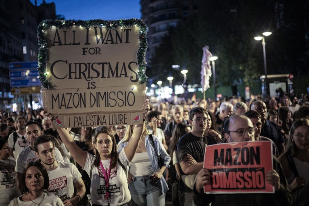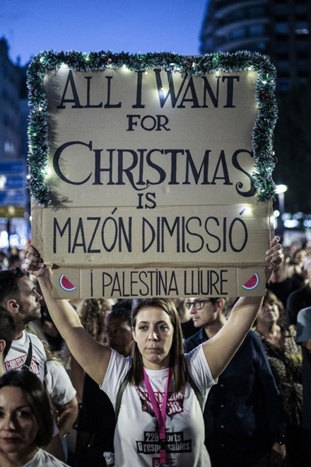 Noseći transparente s porukama poput "Mazona u zatvor" i skandirajući "Nisu umrli, ubijeni su", prosvjednici su ispunili središte Valencije 12. put otkako su se bujične poplave dogodile prije gotovo točno godinu dana.